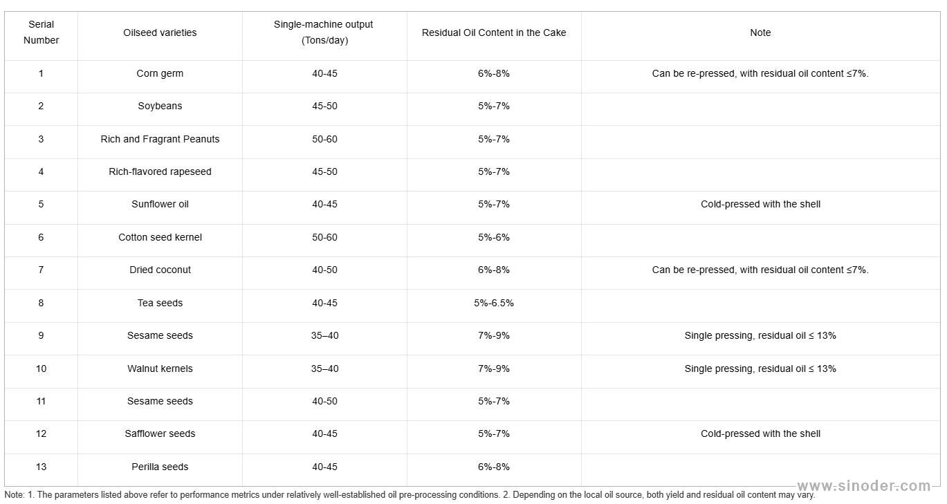 It is widely applicable for pressing vegetable oils from soybeans, rapeseed, cottonseed, sunflower seeds, peanuts, corn germ, tea seeds, and other oilseeds.